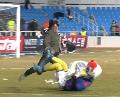 | 팀 패배에 격분…인천 마스코트 폭행 '섬��' Mar 24th 2012, 15:48  | 프로축구 서포터스가 구단의 마스코트를 폭행하는 불상사가 발생했다.24일 인천전용구장에서는 인천과 대전의 K-리그 4라운드가 열려 이적생 설기현이 2골을 몰아친 인천이 대전을 2대1로 누르고 홈에서 첫 승을 거뒀다. 상대를 제물로 첫 승점을 따내야 하는 '단두대 매치'였던 만큼 경고가 9회나 나올 정도로 치열한 싸움이었다.하지만 인천이 무승의 터널을 빠져나온 기쁨을 누릴 새도 없이, 경기장 한쪽에서는 패전의 쓴맛을 본 대전 서포터스 일부가 볼썽사나운 행동을 했다.이들은 광고판을 차는 등 난동을 부리며 관계자들과 몸싸움을 펼쳤다. 그러... | | | |
